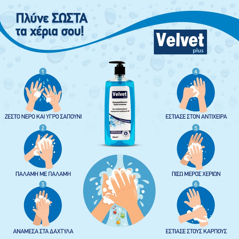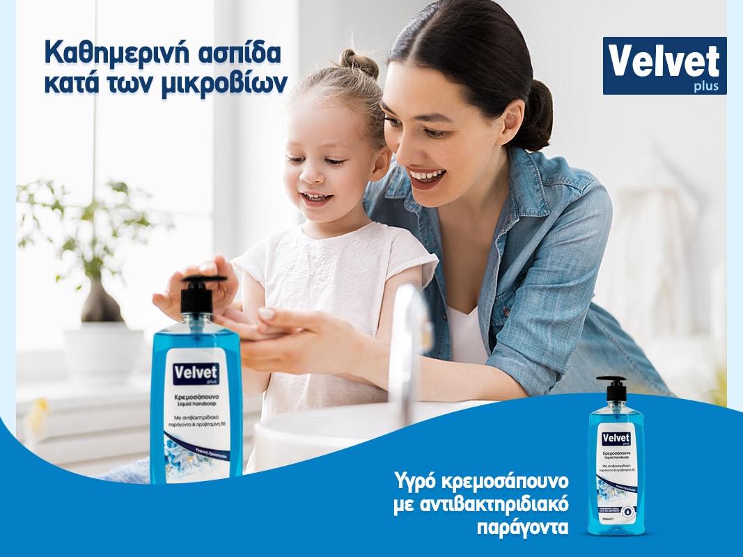 The Velvet Plus line offers complete personal care with a focus on hygiene and protection. Each product combines mild antiseptic action with moisturizing and softening agents, providing a lasting feeling of cleanliness and freshness. Enriched with provitamin B5 and natural aloe juice, they respect the skin and keep it protected every day.