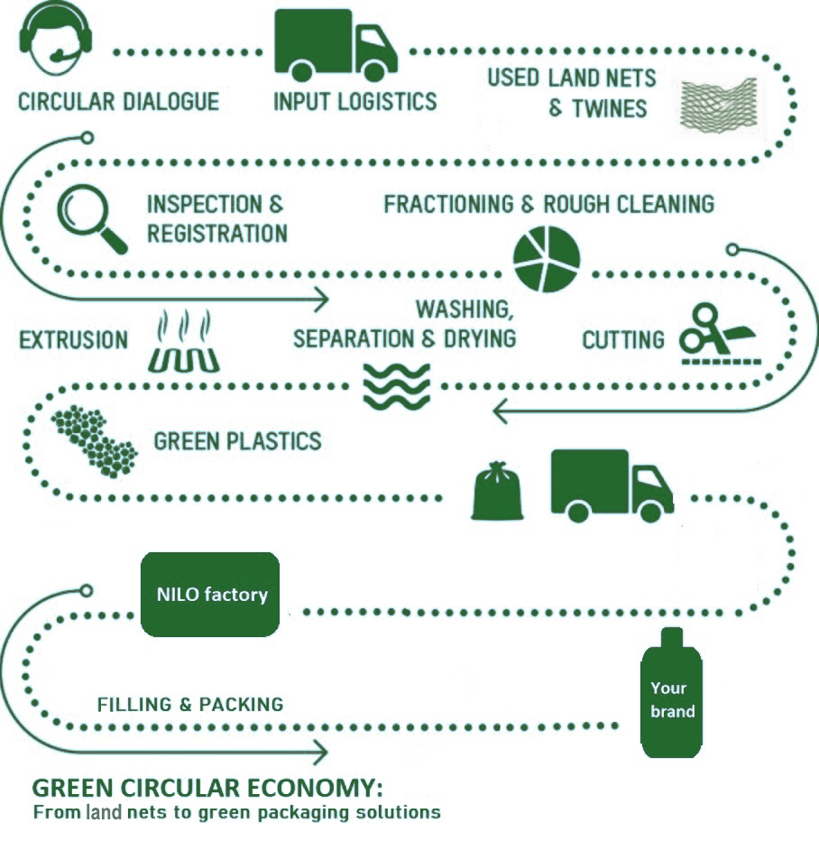 Holding a leading position in private label product manufacturing, NILO decided to move in this direction leveraging the recyclability of HDPE agricultural nets, threads, and twines to encourage our clients to create and distribute ecological products under their own brand names, using this specific raw material for packaging detergents and cosmetics.