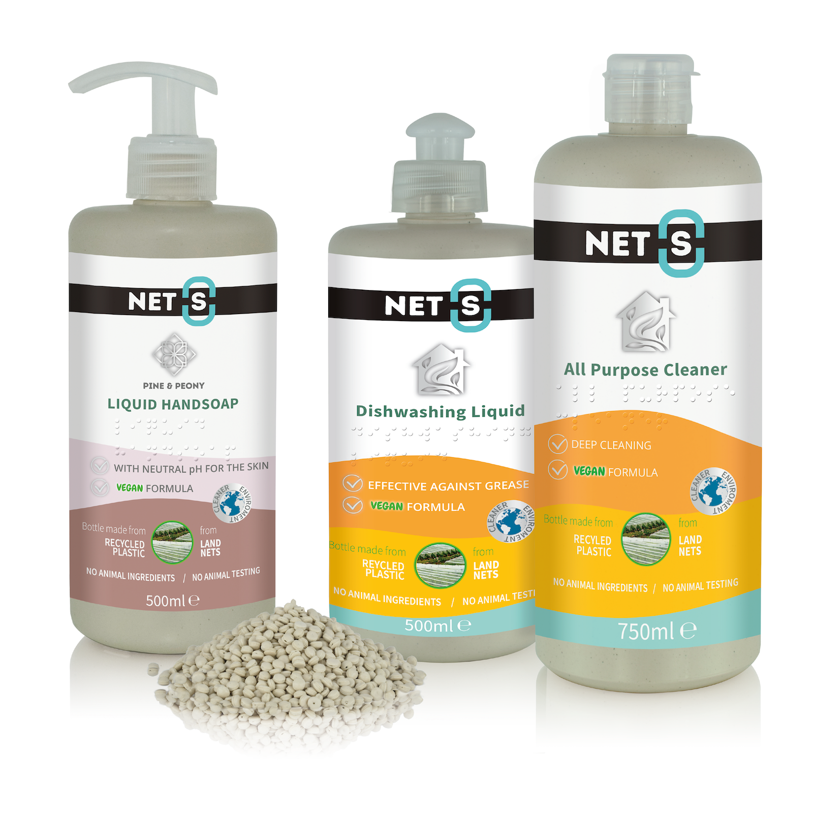 “Continuing this philosophy, the NET(S) line closes the plastic loop on land. The NET(S) household products use recycled plastic derived from land-based nets from agricultural activities, such as greenhouse nets. Circular economy becomes a tangible reality, as the life cycle of plastic takes on a new dimension.”